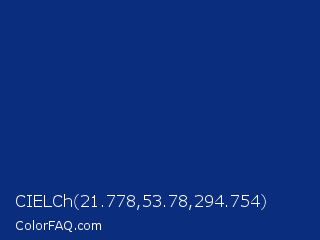 CIELCh 21.778,53.78,294.754 Color is a dark blue color and the nearest color is Catalina Blue #062a78. Hex code #0b2d7e and RGB value is rgb(11,45,126). In RGB color space, this color is composed of 4% red, 18% green, 49% blue, In CMYK color space, this color is composed of 91% cyan, 64% magenta, 0% yellow , 51% black , In HSL color space, this color has a hue angle of 222° , 84% saturation and 27% lightness.