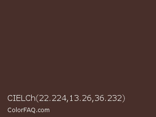 CIELCh 22.224,13.26,36.232 Color is a very dark red color and the nearest color is Old Burgundy #43302e. Hex code #482f2a and RGB value is rgb(72,47,42). In RGB color space, this color is composed of 28% red, 18% green, 16% blue, In CMYK color space, this color is composed of 0% cyan, 35% magenta, 42% yellow , 72% black , In HSL color space, this color has a hue angle of 10° , 26% saturation and 22% lightness.
