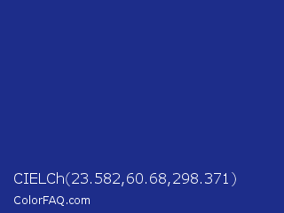 CIELCh 23.582,60.68,298.371 Color is a normal blue color and the nearest color is Jacksons Purple #20208d. Hex code #1d2d8a and RGB value is rgb(29,45,138). In RGB color space, this color is composed of 11% red, 18% green, 54% blue, In CMYK color space, this color is composed of 79% cyan, 67% magenta, 0% yellow , 46% black , In HSL color space, this color has a hue angle of 231° , 65% saturation and 33% lightness.