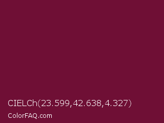 CIELCh 23.599,42.638,4.327 Color is a dark rose color and the nearest color is Black Rose #67032d. Hex code #6f0f35 and RGB value is rgb(111,15,53). In RGB color space, this color is composed of 44% red, 6% green, 21% blue, In CMYK color space, this color is composed of 0% cyan, 86% magenta, 52% yellow , 56% black , In HSL color space, this color has a hue angle of 336° , 76% saturation and 25% lightness.