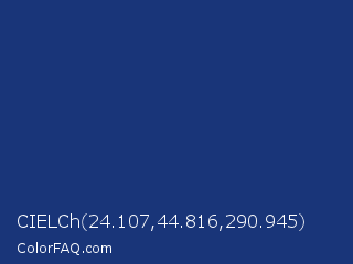 CIELCh 24.107,44.816,290.945 Color is a dark blue color and the nearest color is St Patricks Blue #23297a. Hex code #193579 and RGB value is rgb(25,53,121). In RGB color space, this color is composed of 10% red, 21% green, 47% blue, In CMYK color space, this color is composed of 79% cyan, 56% magenta, 0% yellow , 53% black , In HSL color space, this color has a hue angle of 223° , 66% saturation and 29% lightness.