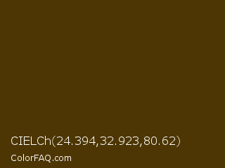 CIELCh 24.394,32.923,80.62 Color is a very dark orange color and the nearest color is Deep Bronze #4a3004. Hex code #4d3603 and RGB value is rgb(77,54,3). In RGB color space, this color is composed of 30% red, 21% green, 1% blue, In CMYK color space, this color is composed of 0% cyan, 30% magenta, 96% yellow , 70% black , In HSL color space, this color has a hue angle of 41° , 93% saturation and 16% lightness.