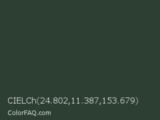 CIELCh 24.802,11.387,153.679 Color is a very dark green color and the nearest color is Kombu Green #354230. Hex code #2d3f33 and RGB value is rgb(45,63,51). In RGB color space, this color is composed of 18% red, 25% green, 20% blue, In CMYK color space, this color is composed of 29% cyan, 0% magenta, 19% yellow , 75% black , In HSL color space, this color has a hue angle of 140° , 17% saturation and 21% lightness.