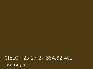 CIELCh 25.27,27.384,82.461 Color is a very dark orange color and the nearest color is Punga #4d3d14. Hex code #4c3911 and RGB value is rgb(76,57,17). In RGB color space, this color is composed of 30% red, 22% green, 7% blue, In CMYK color space, this color is composed of 0% cyan, 25% magenta, 78% yellow , 70% black , In HSL color space, this color has a hue angle of 41° , 63% saturation and 18% lightness.