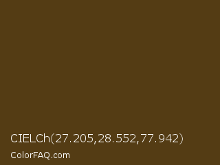 CIELCh 27.205,28.552,77.942 Color is a very dark orange color and the nearest color is Punga #4d3d14. Hex code #543c14 and RGB value is rgb(84,60,20). In RGB color space, this color is composed of 33% red, 24% green, 8% blue, In CMYK color space, this color is composed of 0% cyan, 29% magenta, 76% yellow , 67% black , In HSL color space, this color has a hue angle of 38° , 62% saturation and 20% lightness.