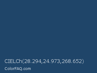 CIELCh 28.294,24.973,268.652 Color is a dark blue color and the nearest color is Rhino #2e3f62. Hex code #1f4569 and RGB value is rgb(31,69,105). In RGB color space, this color is composed of 12% red, 27% green, 41% blue, In CMYK color space, this color is composed of 70% cyan, 34% magenta, 0% yellow , 59% black , In HSL color space, this color has a hue angle of 209° , 54% saturation and 27% lightness.