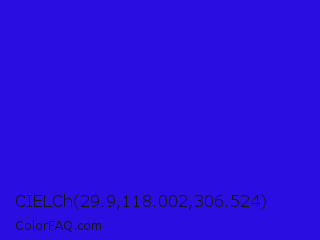 CIELCh 29.9,118.002,306.524 Color is a normal indigo color and the nearest color is Interdimensional Blue #360ccc. Hex code #290de1 and RGB value is rgb(41,13,225). In RGB color space, this color is composed of 16% red, 5% green, 88% blue, In CMYK color space, this color is composed of 82% cyan, 94% magenta, 0% yellow , 12% black , In HSL color space, this color has a hue angle of 248° , 89% saturation and 47% lightness.