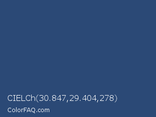 CIELCh 30.847,29.404,278 Color is a normal blue color and the nearest color is San Juan #304b6a. Hex code #2b4976 and RGB value is rgb(43,73,118). In RGB color space, this color is composed of 17% red, 29% green, 46% blue, In CMYK color space, this color is composed of 64% cyan, 38% magenta, 0% yellow , 54% black , In HSL color space, this color has a hue angle of 216° , 47% saturation and 32% lightness.