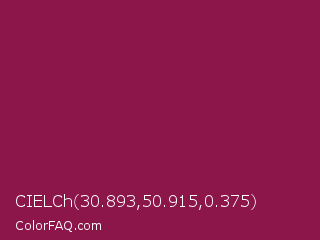 CIELCh 30.893,50.915,0.375 Color is a normal rose color and the nearest color is Disco #871550. Hex code #8c154a and RGB value is rgb(140,21,74). In RGB color space, this color is composed of 55% red, 8% green, 29% blue, In CMYK color space, this color is composed of 0% cyan, 85% magenta, 47% yellow , 45% black , In HSL color space, this color has a hue angle of 333° , 74% saturation and 32% lightness.