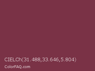CIELCh 31.488,33.646,5.804 Color is a normal rose color and the nearest color is Catawba #703642. Hex code #7a3246 and RGB value is rgb(122,50,70). In RGB color space, this color is composed of 48% red, 20% green, 27% blue, In CMYK color space, this color is composed of 0% cyan, 59% magenta, 43% yellow , 52% black , In HSL color space, this color has a hue angle of 343° , 42% saturation and 34% lightness.