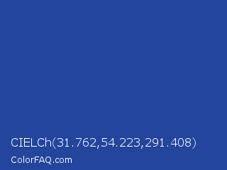 CIELCh 31.762,54.223,291.408 Color is a normal blue color and the nearest color is Sapphire #2f519e. Hex code #23459b and RGB value is rgb(35,69,155). In RGB color space, this color is composed of 14% red, 27% green, 61% blue, In CMYK color space, this color is composed of 77% cyan, 55% magenta, 0% yellow , 39% black , In HSL color space, this color has a hue angle of 223° , 63% saturation and 37% lightness.