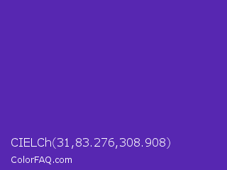 CIELCh 31,83.276,308.908 Color is a normal violet color and the nearest color is Purple Heart Crayola #652dc1. Hex code #5727b1 and RGB value is rgb(87,39,177). In RGB color space, this color is composed of 34% red, 15% green, 69% blue, In CMYK color space, this color is composed of 51% cyan, 78% magenta, 0% yellow , 31% black , In HSL color space, this color has a hue angle of 261° , 64% saturation and 42% lightness.