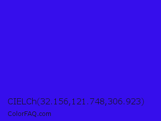 CIELCh 32.156,121.748,306.923 Color is a normal indigo color and the nearest color is Electric Ultramarine #3f00ff. Hex code #360eec and RGB value is rgb(54,14,236). In RGB color space, this color is composed of 21% red, 5% green, 93% blue, In CMYK color space, this color is composed of 77% cyan, 94% magenta, 0% yellow , 7% black , In HSL color space, this color has a hue angle of 251° , 89% saturation and 49% lightness.