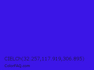 CIELCh 32.257,117.919,306.895 Color is a normal indigo color and the nearest color is Interdimensional Blue #360ccc. Hex code #3b14e7 and RGB value is rgb(59,20,231). In RGB color space, this color is composed of 23% red, 8% green, 91% blue, In CMYK color space, this color is composed of 74% cyan, 91% magenta, 0% yellow , 9% black , In HSL color space, this color has a hue angle of 251° , 84% saturation and 49% lightness.