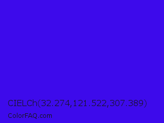 CIELCh 32.274,121.522,307.389 Color is a normal indigo color and the nearest color is Electric Ultramarine #3f00ff. Hex code #3d0aeb and RGB value is rgb(61,10,235). In RGB color space, this color is composed of 24% red, 4% green, 92% blue, In CMYK color space, this color is composed of 74% cyan, 96% magenta, 0% yellow , 8% black , In HSL color space, this color has a hue angle of 254° , 92% saturation and 48% lightness.