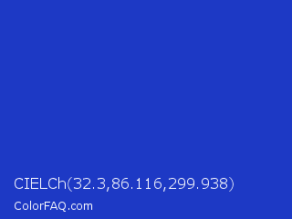 CIELCh 32.3,86.116,299.938 Color is a normal blue color and the nearest color is Persian Blue #1c39bb. Hex code #1d39c5 and RGB value is rgb(29,57,197). In RGB color space, this color is composed of 11% red, 22% green, 77% blue, In CMYK color space, this color is composed of 85% cyan, 71% magenta, 0% yellow , 23% black , In HSL color space, this color has a hue angle of 230° , 74% saturation and 44% lightness.