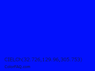 CIELCh 32.726,129.96,305.753 Color is a normal blue color and the nearest color is Blue #0000ff. Hex code #0210fc and RGB value is rgb(2,16,252). In RGB color space, this color is composed of 1% red, 6% green, 99% blue, In CMYK color space, this color is composed of 99% cyan, 94% magenta, 0% yellow , 1% black , In HSL color space, this color has a hue angle of 237° , 98% saturation and 50% lightness.