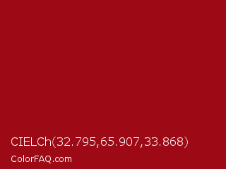 CIELCh 32.795,65.907,33.868 Color is a normal red color and the nearest color is Spartan Crimson #9e1316. Hex code #9d0a16 and RGB value is rgb(157,10,22). In RGB color space, this color is composed of 62% red, 4% green, 9% blue, In CMYK color space, this color is composed of 0% cyan, 94% magenta, 86% yellow , 38% black , In HSL color space, this color has a hue angle of 355° , 88% saturation and 33% lightness.