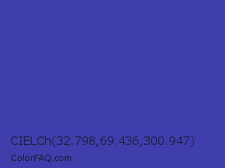 CIELCh 32.798,69.436,300.947 Color is a normal indigo color and the nearest color is Ocean Blue #4f42b5. Hex code #403dad and RGB value is rgb(64,61,173). In RGB color space, this color is composed of 25% red, 24% green, 68% blue, In CMYK color space, this color is composed of 63% cyan, 65% magenta, 0% yellow , 32% black , In HSL color space, this color has a hue angle of 242° , 48% saturation and 46% lightness.