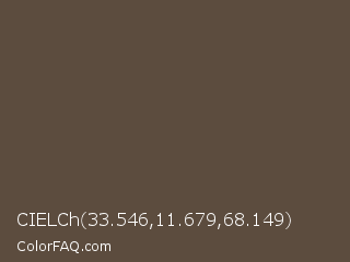 CIELCh 33.546,11.679,68.149 Color is a dark orange color and the nearest color is Kabul #5e483e. Hex code #5c4c3e and RGB value is rgb(92,76,62). In RGB color space, this color is composed of 36% red, 30% green, 24% blue, In CMYK color space, this color is composed of 0% cyan, 17% magenta, 33% yellow , 64% black , In HSL color space, this color has a hue angle of 28° , 19% saturation and 30% lightness.
