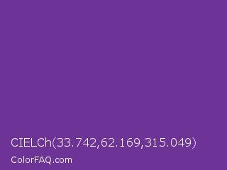 CIELCh 33.742,62.169,315.049 Color is a normal purple color and the nearest color is Purple Heart #69359c. Hex code #6e3396 and RGB value is rgb(110,51,150). In RGB color space, this color is composed of 43% red, 20% green, 59% blue, In CMYK color space, this color is composed of 27% cyan, 66% magenta, 0% yellow , 41% black , In HSL color space, this color has a hue angle of 276° , 49% saturation and 39% lightness.