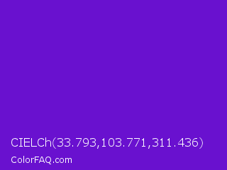 CIELCh 33.793,103.771,311.436 Color is a normal violet color and the nearest color is Purple Heart Crayola #652dc1. Hex code #6911cf and RGB value is rgb(105,17,207). In RGB color space, this color is composed of 41% red, 7% green, 81% blue, In CMYK color space, this color is composed of 49% cyan, 92% magenta, 0% yellow , 19% black , In HSL color space, this color has a hue angle of 268° , 85% saturation and 44% lightness.