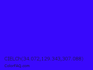 CIELCh 34.072,129.343,307.088 Color is a normal indigo color and the nearest color is Electric Ultramarine #3f00ff. Hex code #3808fc and RGB value is rgb(56,8,252). In RGB color space, this color is composed of 22% red, 3% green, 99% blue, In CMYK color space, this color is composed of 78% cyan, 97% magenta, 0% yellow , 1% black , In HSL color space, this color has a hue angle of 252° , 98% saturation and 51% lightness.