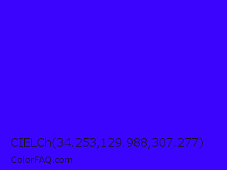 CIELCh 34.253,129.988,307.277 Color is a normal indigo color and the nearest color is Electric Ultramarine #3f00ff. Hex code #3b05fd and RGB value is rgb(59,5,253). In RGB color space, this color is composed of 23% red, 2% green, 99% blue, In CMYK color space, this color is composed of 77% cyan, 98% magenta, 0% yellow , 1% black , In HSL color space, this color has a hue angle of 253° , 98% saturation and 51% lightness.
