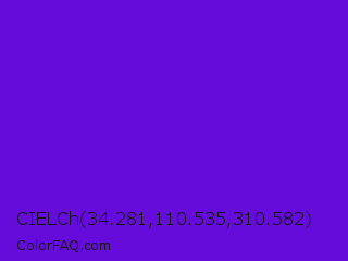 CIELCh 34.281,110.535,310.582 Color is a normal violet color and the nearest color is French Violet #8806ce. Hex code #650cdb and RGB value is rgb(101,12,219). In RGB color space, this color is composed of 40% red, 5% green, 86% blue, In CMYK color space, this color is composed of 54% cyan, 95% magenta, 0% yellow , 14% black , In HSL color space, this color has a hue angle of 266° , 90% saturation and 45% lightness.