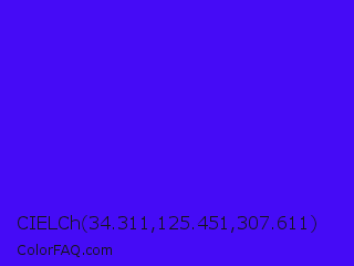 CIELCh 34.311,125.451,307.611 Color is a normal indigo color and the nearest color is Electric Ultramarine #3f00ff. Hex code #450bf6 and RGB value is rgb(69,11,246). In RGB color space, this color is composed of 27% red, 4% green, 96% blue, In CMYK color space, this color is composed of 72% cyan, 96% magenta, 0% yellow , 4% black , In HSL color space, this color has a hue angle of 255° , 93% saturation and 50% lightness.