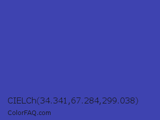CIELCh 34.341,67.284,299.038 Color is a normal blue color and the nearest color is Violet Blue #324ab2. Hex code #3e43b0 and RGB value is rgb(62,67,176). In RGB color space, this color is composed of 24% red, 26% green, 69% blue, In CMYK color space, this color is composed of 65% cyan, 62% magenta, 0% yellow , 31% black , In HSL color space, this color has a hue angle of 237° , 48% saturation and 47% lightness.