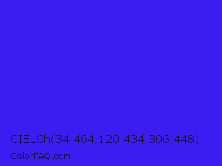 CIELCh 34.464,120.434,306.448 Color is a normal indigo color and the nearest color is Han Purple #5218fa. Hex code #3d1cf2 and RGB value is rgb(61,28,242). In RGB color space, this color is composed of 24% red, 11% green, 95% blue, In CMYK color space, this color is composed of 75% cyan, 88% magenta, 0% yellow , 5% black , In HSL color space, this color has a hue angle of 249° , 89% saturation and 53% lightness.