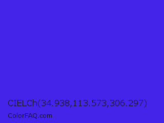 CIELCh 34.938,113.573,306.297 Color is a normal indigo color and the nearest color is Han Purple #5218fa. Hex code #4524ea and RGB value is rgb(69,36,234). In RGB color space, this color is composed of 27% red, 14% green, 92% blue, In CMYK color space, this color is composed of 71% cyan, 85% magenta, 0% yellow , 8% black , In HSL color space, this color has a hue angle of 250° , 83% saturation and 53% lightness.