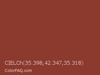 CIELCh 35.398,42.347,35.318 Color is a normal red color and the nearest color is El Salva #8f3e33. Hex code #8c392e and RGB value is rgb(140,57,46). In RGB color space, this color is composed of 55% red, 22% green, 18% blue, In CMYK color space, this color is composed of 0% cyan, 59% magenta, 67% yellow , 45% black , In HSL color space, this color has a hue angle of 7° , 51% saturation and 36% lightness.