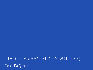 CIELCh 35.881,61.125,291.237 Color is a normal blue color and the nearest color is Denim Blue #2243b6. Hex code #214eb1 and RGB value is rgb(33,78,177). In RGB color space, this color is composed of 13% red, 31% green, 69% blue, In CMYK color space, this color is composed of 81% cyan, 56% magenta, 0% yellow , 31% black , In HSL color space, this color has a hue angle of 221° , 69% saturation and 41% lightness.