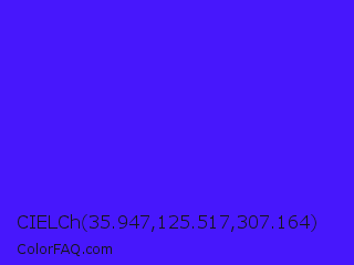 CIELCh 35.947,125.517,307.164 Color is a normal indigo color and the nearest color is Han Purple #5218fa. Hex code #4717fc and RGB value is rgb(71,23,252). In RGB color space, this color is composed of 28% red, 9% green, 99% blue, In CMYK color space, this color is composed of 72% cyan, 91% magenta, 0% yellow , 1% black , In HSL color space, this color has a hue angle of 253° , 97% saturation and 54% lightness.