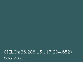 CIELCh 36.288,15.117,204.652 Color is a dark cyan color and the nearest color is Spectra #2f5a57. Hex code #325c5f and RGB value is rgb(50,92,95). In RGB color space, this color is composed of 20% red, 36% green, 37% blue, In CMYK color space, this color is composed of 47% cyan, 3% magenta, 0% yellow , 63% black , In HSL color space, this color has a hue angle of 184° , 31% saturation and 28% lightness.