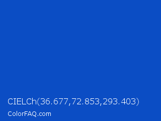 CIELCh 36.677,72.853,293.403 Color is a normal blue color and the nearest color is Sapphire #0f52ba. Hex code #0b4dc4 and RGB value is rgb(11,77,196). In RGB color space, this color is composed of 4% red, 30% green, 77% blue, In CMYK color space, this color is composed of 94% cyan, 61% magenta, 0% yellow , 23% black , In HSL color space, this color has a hue angle of 219° , 89% saturation and 41% lightness.