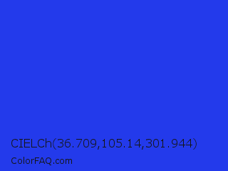 CIELCh 36.709,105.14,301.944 Color is a normal blue color and the nearest color is Palatinate Blue #273be2. Hex code #233aeb and RGB value is rgb(35,58,235). In RGB color space, this color is composed of 14% red, 23% green, 92% blue, In CMYK color space, this color is composed of 85% cyan, 75% magenta, 0% yellow , 8% black , In HSL color space, this color has a hue angle of 233° , 83% saturation and 53% lightness.