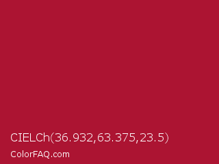 CIELCh 36.932,63.375,23.5 Color is a normal red color and the nearest color is Shiraz #b20931. Hex code #ac1432 and RGB value is rgb(172,20,50). In RGB color space, this color is composed of 67% red, 8% green, 20% blue, In CMYK color space, this color is composed of 0% cyan, 88% magenta, 71% yellow , 33% black , In HSL color space, this color has a hue angle of 348° , 79% saturation and 38% lightness.