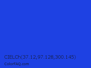 CIELCh 37.12,97.128,300.145 Color is a normal blue color and the nearest color is Palatinate Blue #273be2. Hex code #1e41e3 and RGB value is rgb(30,65,227). In RGB color space, this color is composed of 12% red, 25% green, 89% blue, In CMYK color space, this color is composed of 87% cyan, 71% magenta, 0% yellow , 11% black , In HSL color space, this color has a hue angle of 229° , 78% saturation and 50% lightness.