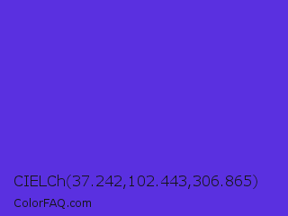 CIELCh 37.242,102.443,306.865 Color is a normal indigo color and the nearest color is Majorelle Blue #6050dc. Hex code #5a30e0 and RGB value is rgb(90,48,224). In RGB color space, this color is composed of 35% red, 19% green, 88% blue, In CMYK color space, this color is composed of 60% cyan, 79% magenta, 0% yellow , 12% black , In HSL color space, this color has a hue angle of 254° , 74% saturation and 53% lightness.
