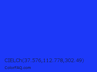 CIELCh 37.576,112.778,302.49 Color is a normal blue color and the nearest color is Palatinate Blue #273be2. Hex code #1c38f8 and RGB value is rgb(28,56,248). In RGB color space, this color is composed of 11% red, 22% green, 97% blue, In CMYK color space, this color is composed of 89% cyan, 77% magenta, 0% yellow , 3% black , In HSL color space, this color has a hue angle of 232° , 94% saturation and 54% lightness.