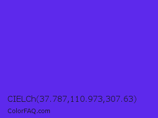 CIELCh 37.787,110.973,307.63 Color is a normal indigo color and the nearest color is Han Purple #5218fa. Hex code #5d29ec and RGB value is rgb(93,41,236). In RGB color space, this color is composed of 36% red, 16% green, 93% blue, In CMYK color space, this color is composed of 61% cyan, 83% magenta, 0% yellow , 7% black , In HSL color space, this color has a hue angle of 256° , 84% saturation and 54% lightness.