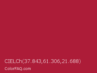 CIELCh 37.843,61.306,21.688 Color is a normal red color and the nearest color is Deep Carmine #a9203e. Hex code #ad1c38 and RGB value is rgb(173,28,56). In RGB color space, this color is composed of 68% red, 11% green, 22% blue, In CMYK color space, this color is composed of 0% cyan, 84% magenta, 68% yellow , 32% black , In HSL color space, this color has a hue angle of 348° , 72% saturation and 39% lightness.