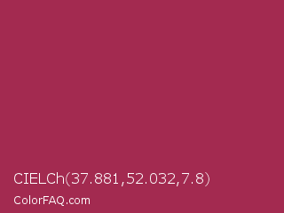 CIELCh 37.881,52.032,7.8 Color is a normal rose color and the nearest color is Amaranth Purple #ab274f. Hex code #a32a50 and RGB value is rgb(163,42,80). In RGB color space, this color is composed of 64% red, 16% green, 31% blue, In CMYK color space, this color is composed of 0% cyan, 74% magenta, 51% yellow , 36% black , In HSL color space, this color has a hue angle of 341° , 59% saturation and 40% lightness.