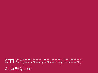 CIELCh 37.982,59.823,12.809 Color is a normal rose color and the nearest color is French Wine #ac1e44. Hex code #ad1a47 and RGB value is rgb(173,26,71). In RGB color space, this color is composed of 68% red, 10% green, 28% blue, In CMYK color space, this color is composed of 0% cyan, 85% magenta, 59% yellow , 32% black , In HSL color space, this color has a hue angle of 342° , 74% saturation and 39% lightness.