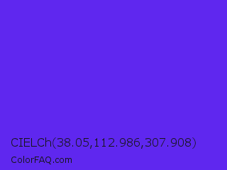 CIELCh 38.05,112.986,307.908 Color is a normal indigo color and the nearest color is Han Purple #5218fa. Hex code #5f27ef and RGB value is rgb(95,39,239). In RGB color space, this color is composed of 37% red, 15% green, 94% blue, In CMYK color space, this color is composed of 60% cyan, 84% magenta, 0% yellow , 6% black , In HSL color space, this color has a hue angle of 257° , 86% saturation and 55% lightness.