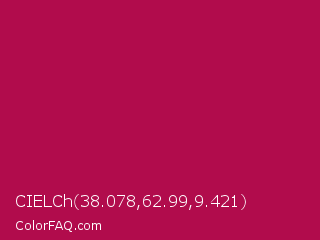 CIELCh 38.078,62.99,9.421 Color is a normal rose color and the nearest color is Pictorial Carmine #c30b4e. Hex code #b10c4c and RGB value is rgb(177,12,76). In RGB color space, this color is composed of 69% red, 5% green, 30% blue, In CMYK color space, this color is composed of 0% cyan, 93% magenta, 57% yellow , 31% black , In HSL color space, this color has a hue angle of 337° , 87% saturation and 37% lightness.