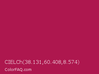 CIELCh 38.131,60.408,8.574 Color is a normal rose color and the nearest color is French Wine #ac1e44. Hex code #ae174e and RGB value is rgb(174,23,78). In RGB color space, this color is composed of 68% red, 9% green, 31% blue, In CMYK color space, this color is composed of 0% cyan, 87% magenta, 55% yellow , 32% black , In HSL color space, this color has a hue angle of 338° , 77% saturation and 39% lightness.